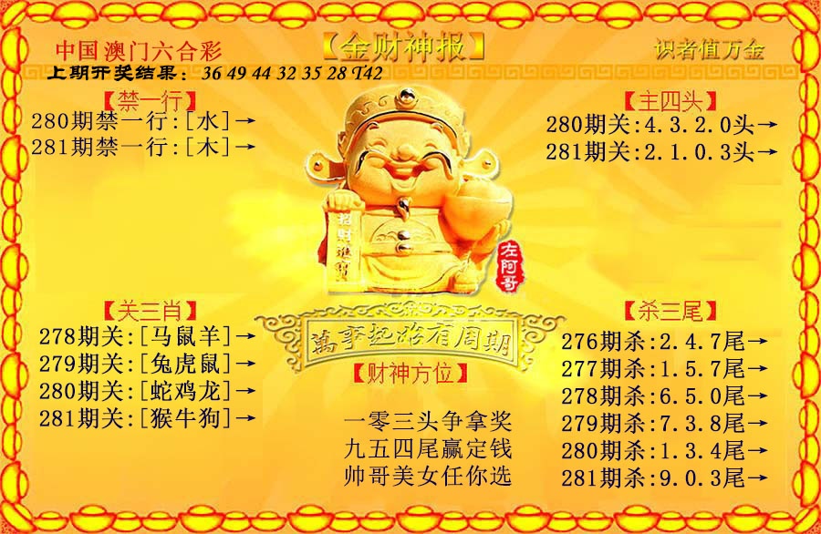 281期: 澳门六合皇彩圖信封【黄财神报】每期自动更新