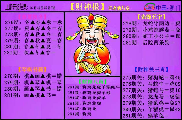 281期: 澳门六合皇彩圖信封【紫财神报】每期自动更新